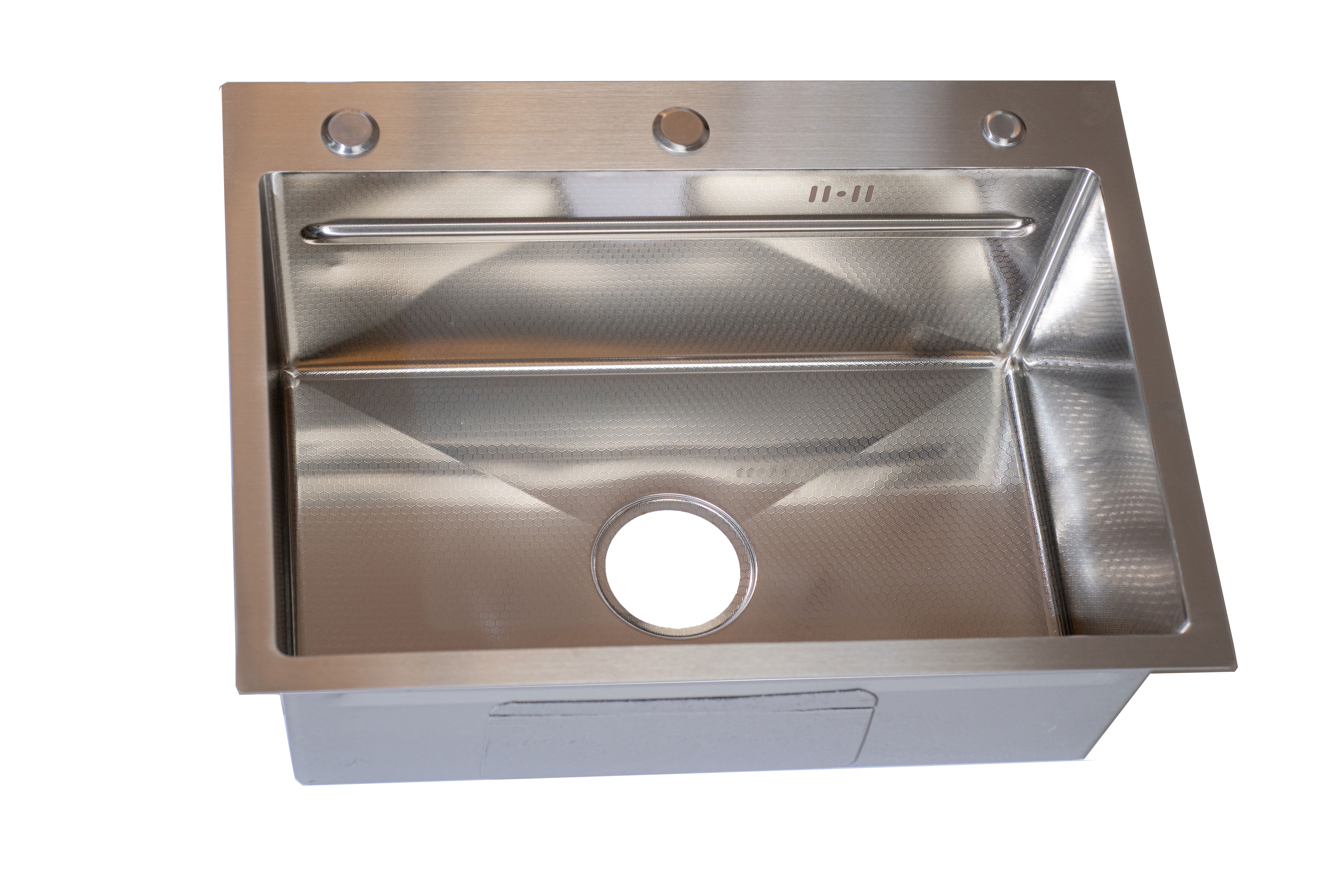Constructed from stainless steel resistant to rust and coated with a Nano protection layer against scratches. It includes three openings for a mixer faucet, filter tap, and soap dispenser. The 3-inch stainless cup drain features an internal basket for trapping debris, with a Water Trap system directing water automatically toward the drain. The 20 cm depth offers wider accommodation for kitchen items.